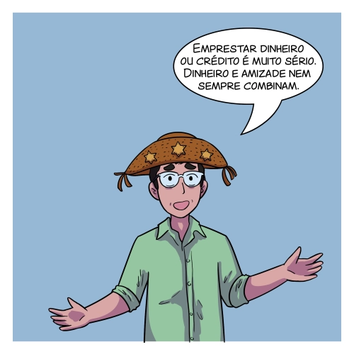 Para facilitar o aprendizado e gerar identificação, criamos uma família típica do interior, simples, batalhadora, cheia de sonhos… e de confusões financeiras.